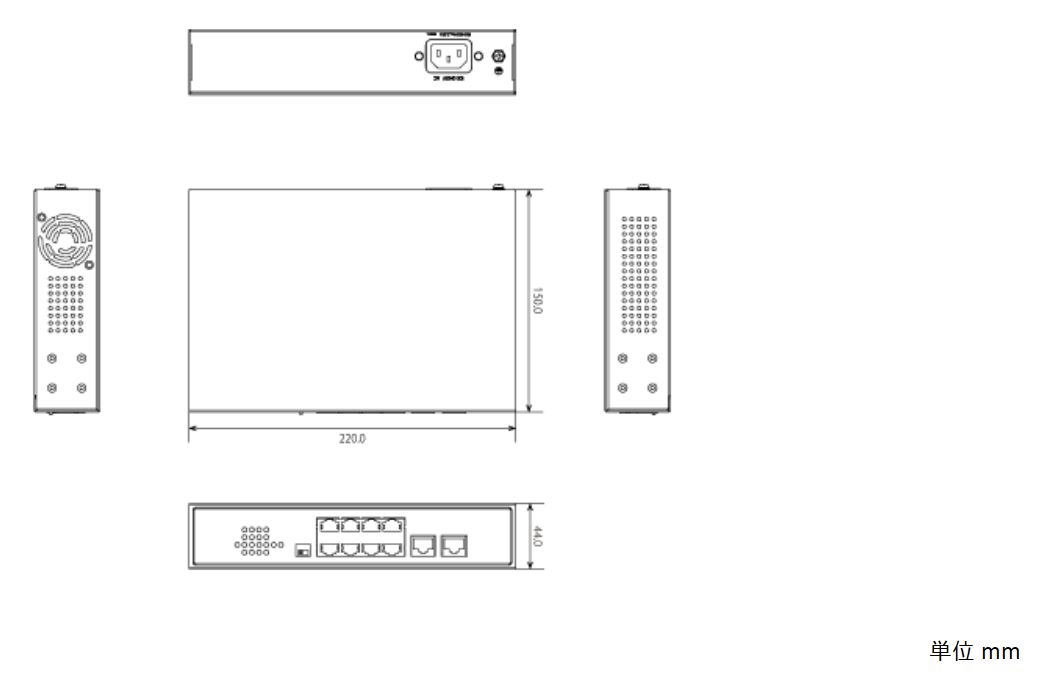 220.0(幅) × 44.0(高) × 150.0(奥)mm |