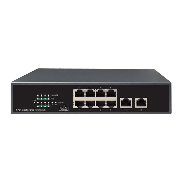 - 8ポートのPoE給電スイッチです( 非PoEギガビットポート ×2 )